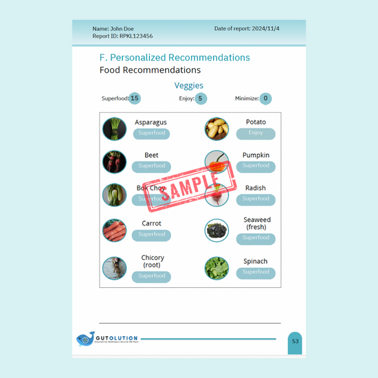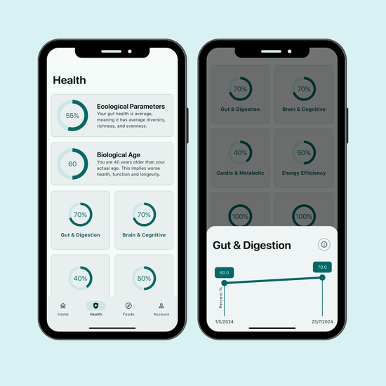 我們的應用程式提供個人化的飲食建議和額外的補充劑。您可以透過我們的應用程式獲得一份詳細的報告,其中詳細說明了您的腸道和整體健康需要改善的具體方面,以及在個人化益生菌基礎上實現這些改善的具體建議。